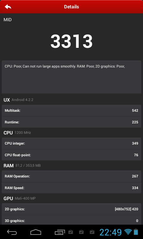 Comme on le voit les caractéristiques sont franchement anachroniques sauf pour ce qui est d’ Android . Et on le verra par la suite , ce choix d’ Android 4.2 n’est pas très heureux...
