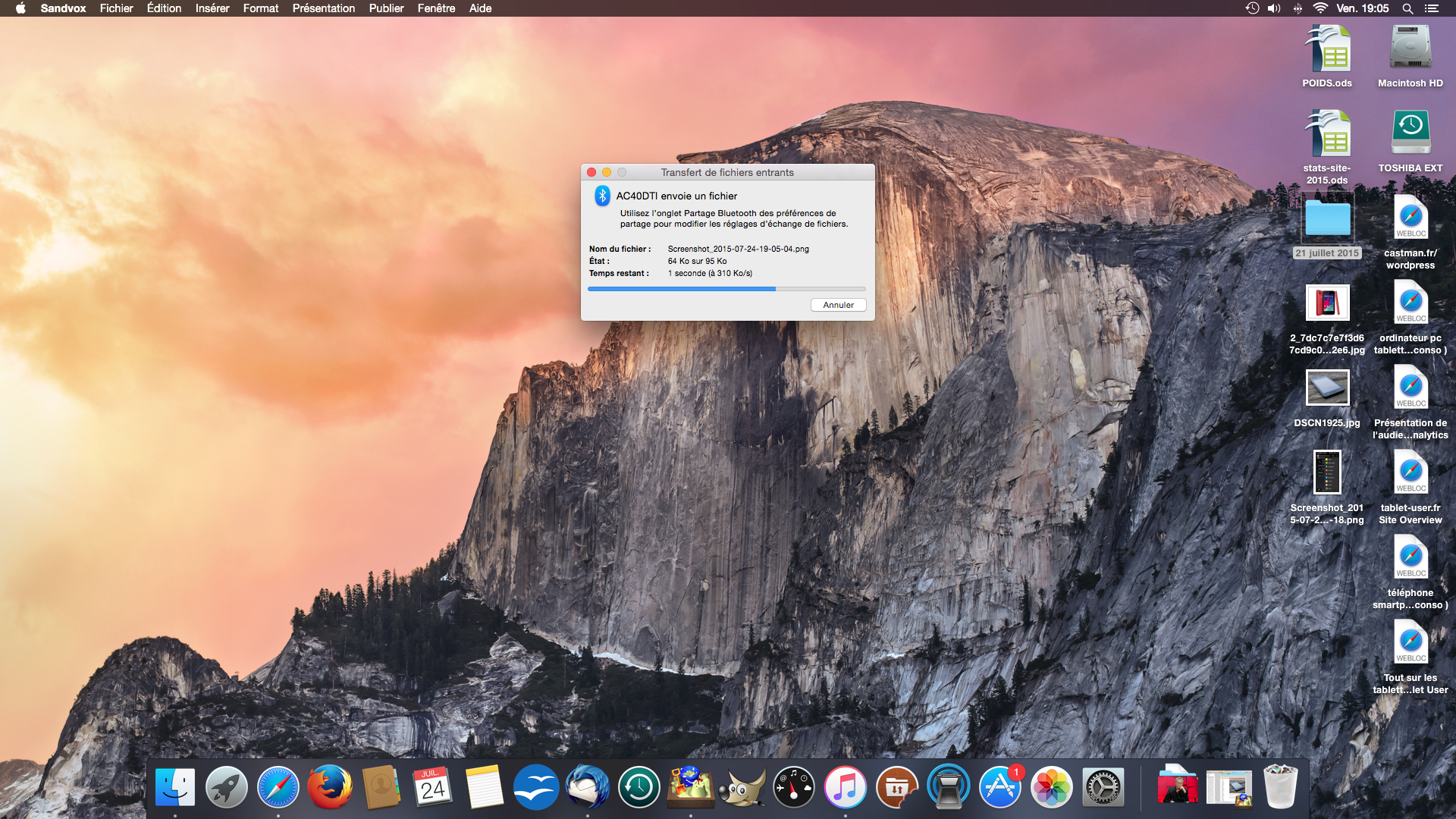 Le Bluetooth fonctionne bien et permet l’envoi simultané du son vers une enceinte sans fil et des fichiers via le partage Bluetooth …