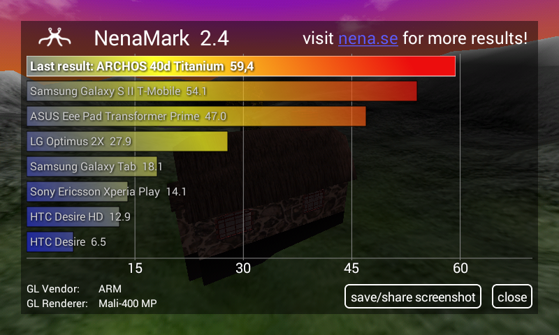 Le Wiko Birdy ne fait que 52,3 , l’Huawei Asscend Y550 59,8 et le Moto E que 46,5 , le Galaxy Core Prime 59,9 le ZTE Apex 3 59,7 …On est proche des meilleurs scores des machines que j’ai testé ...