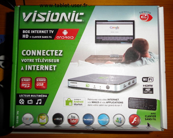 C'est le premier test d'un produit de ce type sur tablet user : une box TV Android …Pour être exact la Visionic Box Internet TV HD+ clavier sans fil Ref : 883 512 .