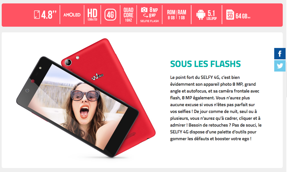 Il s’appelle Wiko Selfy 4G et tout est dans le nom …