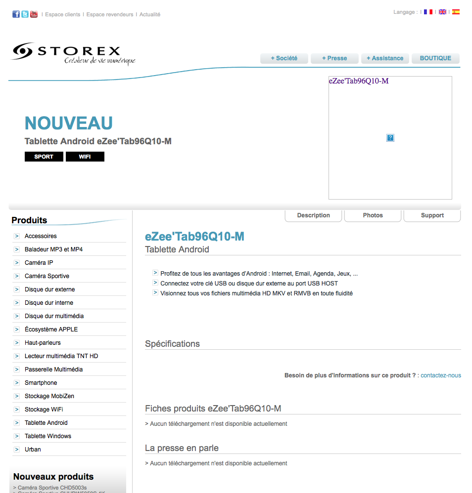 Leclerc commercialise pour 100 Euros une nouvelle tablette Storex inconnue en France ( c’est un comble ! ) dont j’ai pu réussir à trouver des caractéristiques crédibles selon ce que j’ai pu savoir grâce au packaging !